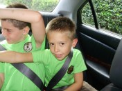 We took everyone to see “Cars 2”. The hardest part was getting the popcorn, candy, and drinks distributed correctly!! Oh, and Carter did hide Caroline’s shoe from her, for which we looked for ten minutes!! That’s all part of the fun!