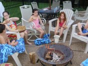 We roasted hotdogs, marshmallows , and made smores. Then we sang around the fire and told ghost stories!