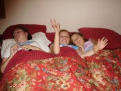 Off to bed. They were so tired they all fell asleep before the movies really even got going. Just as well!